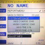 Display of a system message indicating the values for HV0 COARSE / HV90 COARSE, HV0 FINE / HV90 FINE