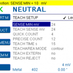The ADVANCED MENU is for experts only. Product parameters are automatically set during the teach assistant. This menu allows to modify the product parameters manually.