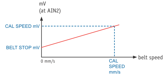 - CAL SPEED mV : AIN2 input at a conveyor speed of CAL SPEED mm/s.