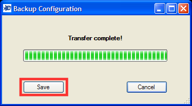3.) The following dialog will open and display the progress while the settings configuration is transferred from the unit (takes approximately 10 seconds to complete):