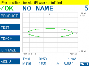 Signal is checked if it exceeds the limits of the teacharea. If yes, it is a metal detection. Limits of the teacharea are adjusted by OPTIMIZE TOL. X and TOL. Y and MULTIPHASE TOL. X* and TOL. Y*.