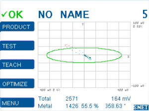 Signal is checked if it exceeds the limits of the teacharea. If yes, it is a metal detection. Limits of the teacharea are adjusted by OPTIMIZE TOL. X and TOL. Y.