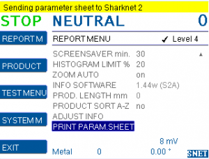 A yellow help message will confirm the settings sheet is being send to SHARKNET. (settings sheet = also known as parameter sheet)