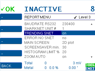 New parameter REPORT MENU>TRENDING SNET enables/disables the continuous transmission of the metal detector receiver data.